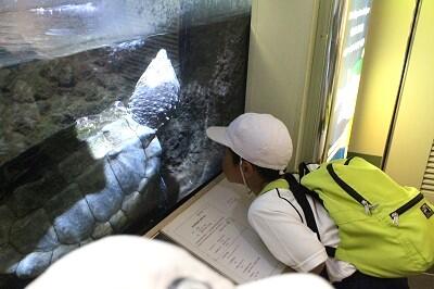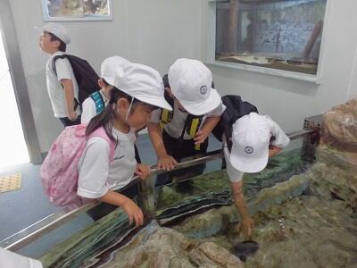 生活科の学習の一環として姫路水族館を見学し、水の中で暮らす生き物の姿や命について学びました。お昼ご飯は持たせてもらったお弁当をおいしくいただきました。