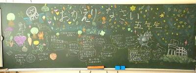 朝学校に来た5年生は、教室の黒板に書かれた6年生からのメッセージを見て喜んでいました。