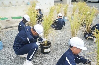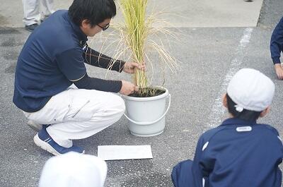 5年生 バケツ稲の稲刈り 投稿: 校長 (10:34) カテゴリー: 今日の出来事 JA兵庫西の方に来ていただき、6月から育ててきたバケツ稲の稲刈りを行いました。 いろいろと教えていただきながら刈り取って、根元をしばり、穂を下にして干しました。 Tweet -